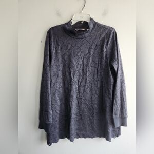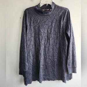Soft Surroundings Grey Floral Lace Mock Neck Overlay Tunic Blouse size Large