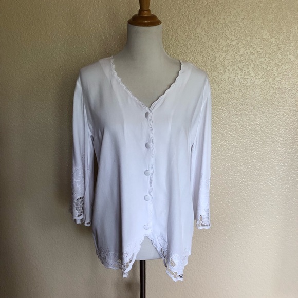 Soft Surroundings Half Moon Bay Embroidered Button Down Shirt Top S