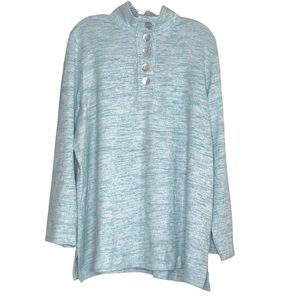 Soft Surroundings Heathered Teal Pullover, Mock Neck, Cotton Blend Top, Size 1X