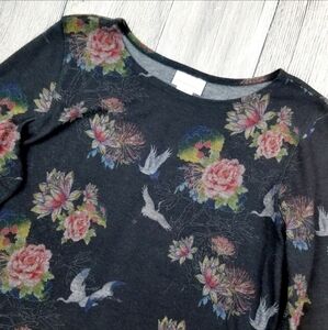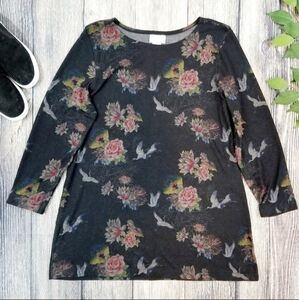 Soft Surroundings Heron Floral Print Tunic Top Black All Over Print Women's M