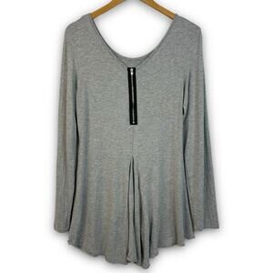 Soft Surroundings High Low Top Blouse Long Sleeve Zipper Back Gray Size Medium