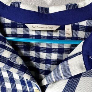 Soft Surroundings Huntleigh Button Up Asymmetric Plaid 3/4 Sleeve Top Size 2X