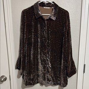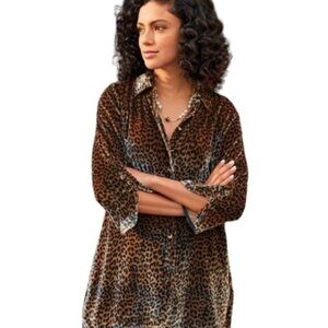 Soft Surroundings Icon Silk Velvet Poets Shirt in Animal Print Tunic Top