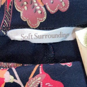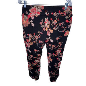 Soft Surroundings Indian Rose Black Floral Pull on Pants Women’s Size Medium