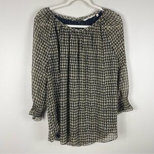 Soft Surroundings Ines Blouse Womens Large Gold black Metallic Chiffon Shirt Top