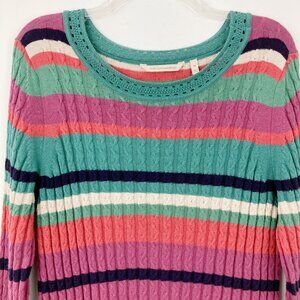 Soft Surroundings Isidor Sweater Size M Cable Knit Striped Cashmere Silk Cotton