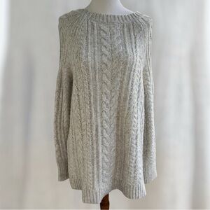Oversized Knit sweater with cut outs on arms. This sweater is stretchy and chunky and 25% wool.