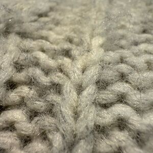 Warm and soft but not itchy. see photos for closeup of sweater . This sweater is supposed to have a rough looking texture and have little fuzzies.
