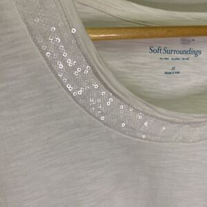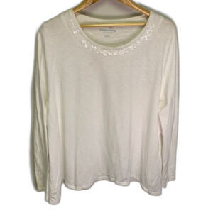 Soft Surroundings Ivory Sequin Scoop Neck Long Sleeve Cotton T-shirt Size 2XL
