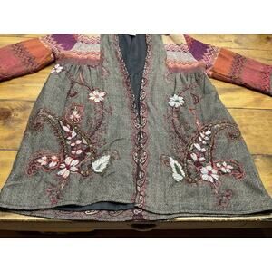 Soft Surroundings Izmir Bohemian Cardigan Wool Brown Floral Embroidered Medium