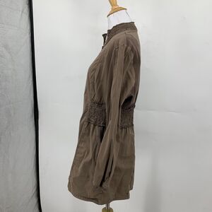 Soft Surroundings Jacket Women L Large Otter Full Zip Smocked Waist Stretch Side