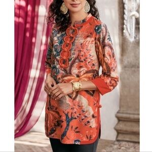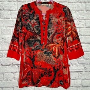 Soft Surroundings Joy Luck Tunic with Chinese Red Knot Buttons