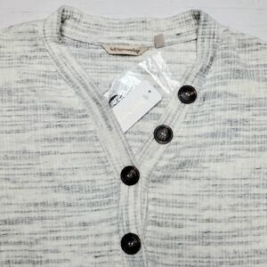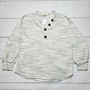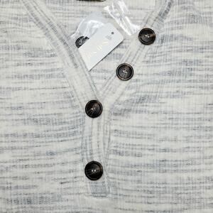 Soft Surroundings Jules Thermal Top Ivory Grey Gray Ribbed Button V Neck Small
