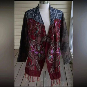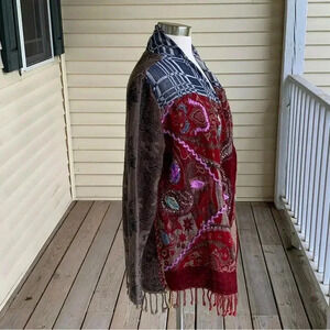 Soft Surroundings Juliette Fringe Kimono Size XS 100% Wool Mixed Media Boho