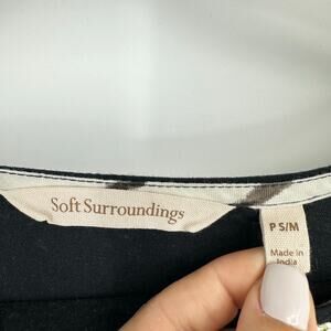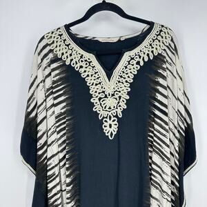 Soft Surroundings Kaftan Dress Size S/M Black White Embroidered Collar Maxi