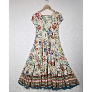 Soft Surroundings Kara Midi Dress sz PM Yellow Multicolor Floral Tiered Boho Peasant