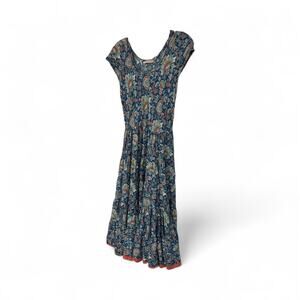 Soft Surroundings Kara Floral Maxi Dress in Fiery Teal Blue Jacobean SZ XS