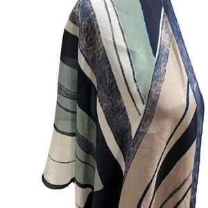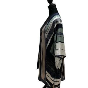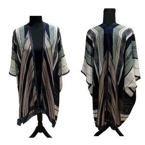 Soft Surroundings Kimono Jacket Silk Open Front Navy Cream One Size