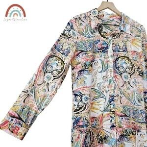 Soft Surroundings Kira Paisley Button Down Shirt Tunic Longline Blouse Top.