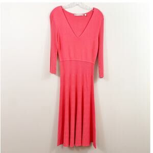 Soft Surroundings Knit 3/4 Ribbed Belled Sleeves Fit & Flare Coral Midi Dress