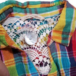 Soft Surroundings Kona Shores Multicolor Plaid Shirt Womens PM Cotton Gauze.