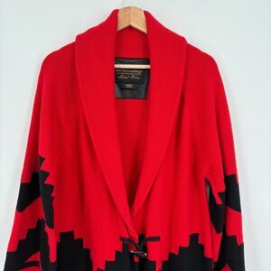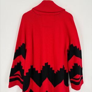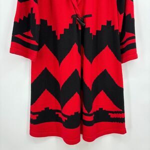 SOFT SURROUNDINGS LABEL NOIR LAMBSWOOL RED & BLACK AZTEC LONGLINE CARDIGAN