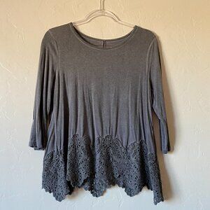 Soft Surroundings Lace Eyelet Hem 3/4 Sleeve Tee