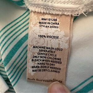 Soft Surroundings Ladson Button Up Top Green Stripe Coastal Lightweight Sz L - in excellent used condition. When laid flat, top measures approximately 23 inches from pit to pit and 31 inches long.