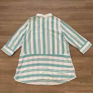 Soft Surroundings Ladson Button Up Top Green Stripe Coastal Lightweight Sz L