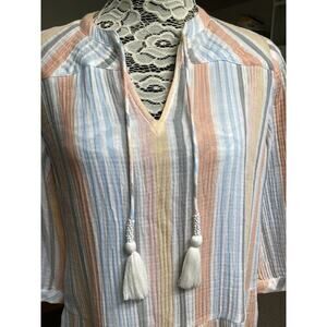Vertical stripe, 3/4 length sleeves, v-neck with tassel