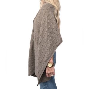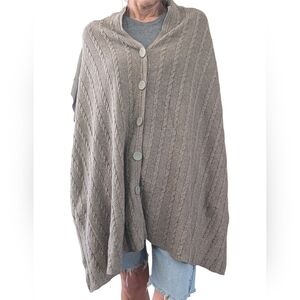 Soft Surroundings Lambswool Cashmere Cable Knit Button Wrap Shawl Poncho S/M