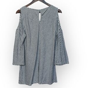 Soft Surroundings Landfall Cold Shoulder Tunic Top Women L Gray Striped Linen