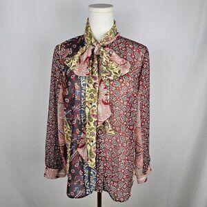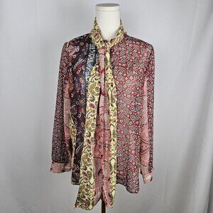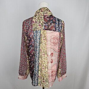 Soft Surroundings Langdon Button Down Tie Paisley Shirt Small Boho Mixed Print