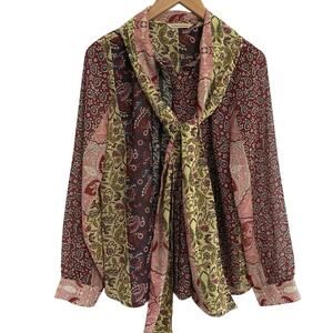Soft Surroundings Langdon Paisley Patchwork Blouse tie Size Woman's Medium