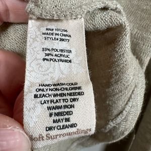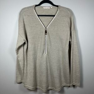 Soft Surroundings Large Gold Zipper Neck Tan Long Sleeve Lightweight Blouse