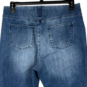 Soft Surroundings Large Jeans Pull-On Stretch Flat Front Whiskered Medium Wash