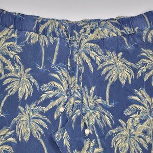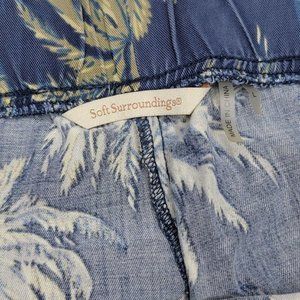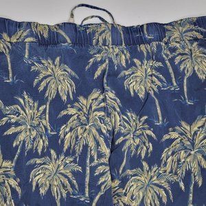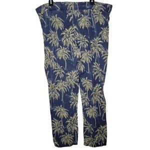Soft Surroundings Large L Blue Palm Patterned Skinny Leg Drawstring Pants
