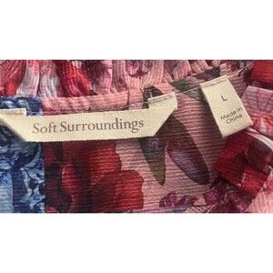 Soft Surroundings Large Pastel Pink Blue Floral Patchwork Print Top