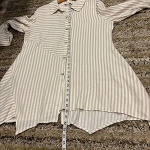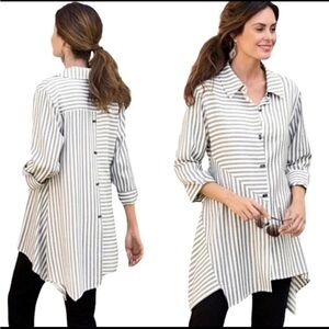 Soft Surroundings Large Standout Striped Asymmetrical Button Down Shirt Tunic