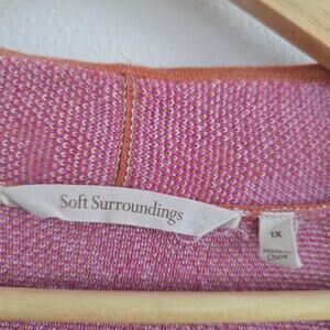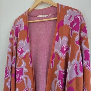 Soft Surroundings Lelie Floral Print Open Front Cardigan Orange Lavender Size 1X