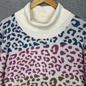 Soft Surroundings Leone Sweater 1X Rainbow Leopard Print Turtleneck Longline