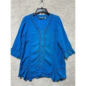 Soft Surroundings Leonie Tunic Top Womens Large Blue 100% Linen 3/4 Sleeve Shirt