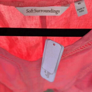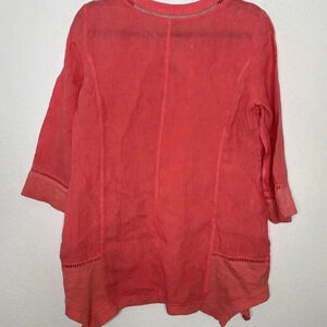New Sun kissed coral boho linen tunic size medium. From armpit to armpit it’s about 21 inches and 32 inches long. Top has been sanitized. Comes from a smoke-free home.