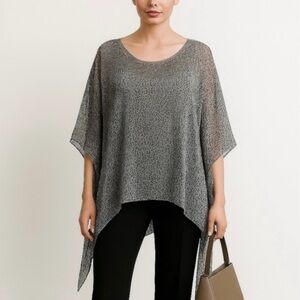 Soft Surroundings Leopard Print Silk Flowy Tunic Blouse in Gray Size L