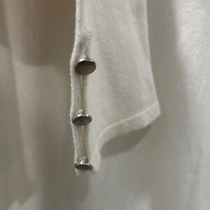 Soft Surroundings lightweight turtleneck sweater in ivory size large. This sweater has a cute button detail on the sleeves and is a longer length so could be worn with leggings. Soft material and like new condition. It’s a great neutral for fall and winter, perfect for layering.