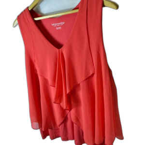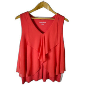 Soft Surroundings Lila Coral Orange Chiffon Drape Front Tunic Tank Top Size PM