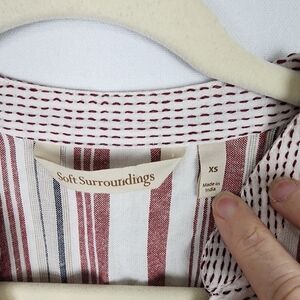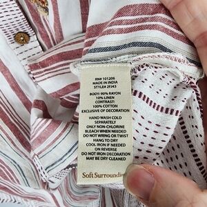 Soft Surroundings Linen Beaded Striped Repose Tunic Button Up SIZE XS