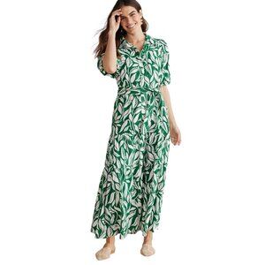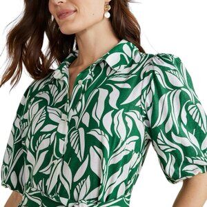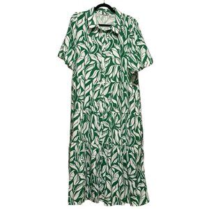 The Soft Surroundings Women's 1X Linen Blend Green Steffi Tropical Tiered Maxi Dress is a stylish and comfortable option for various occasions. Featuring a tropical floral pattern, short puff sleeves, and a collared neckline with button closure, this dress has a beachy, bohemian vibe perfect for summer, fall, or spring. Made from a blend of rayon and linen, this lightweight dress also includes pockets for added convenience. Ideal for travel, parties, or casual wear, this maxi dress from Soft Surroundings offers a blend of style and comfort with a boho twist.