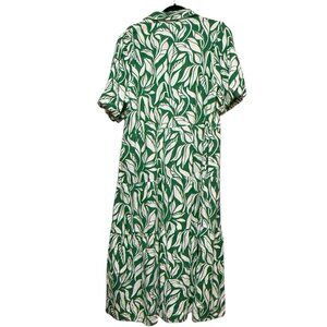 Soft Surroundings Linen Blend Green Steffi Tropical Tiered Maxi Dress Womens 1X