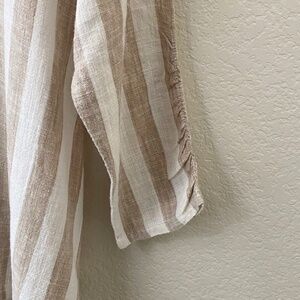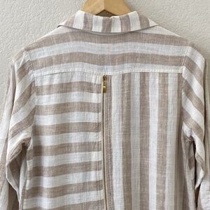 Soft Surroundings Linen Blend Top Size Small Tan Cream Striped Long Sleeve